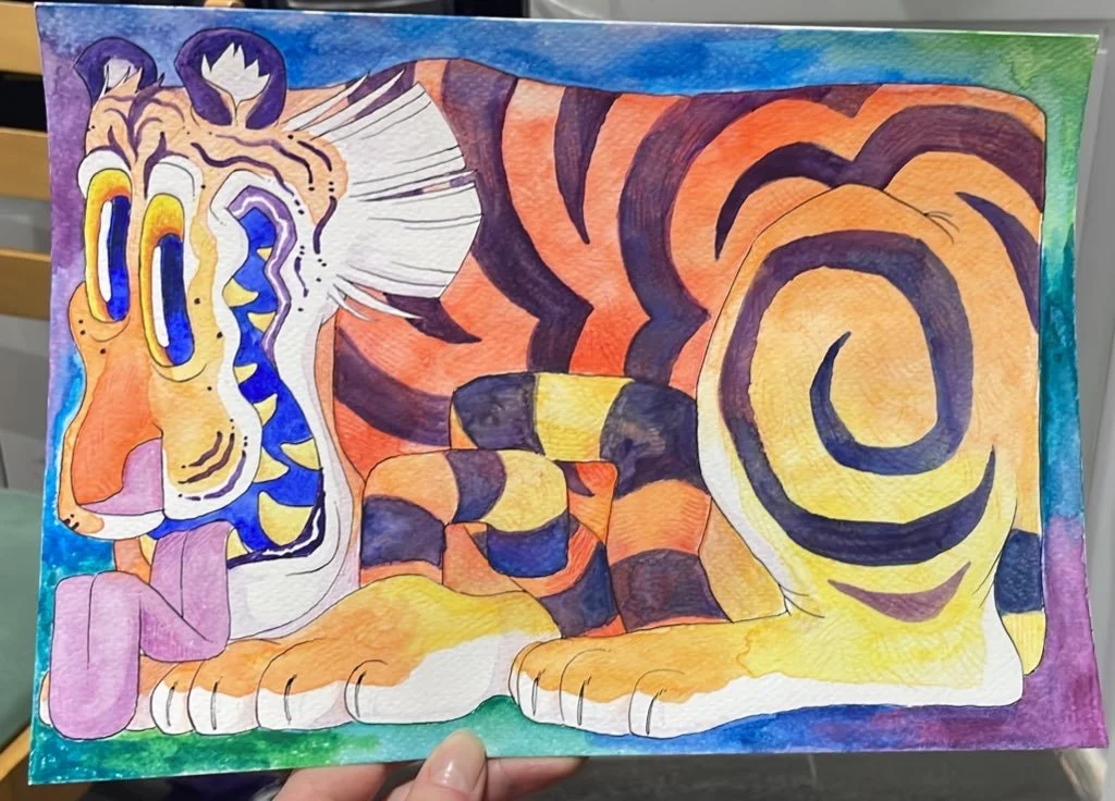 I use a variety of materials to create my traditional art, including crayon, ink, coloured pencil and markers. Experimentation is a key part of my work, and I especially enjoy using less common art supplies.